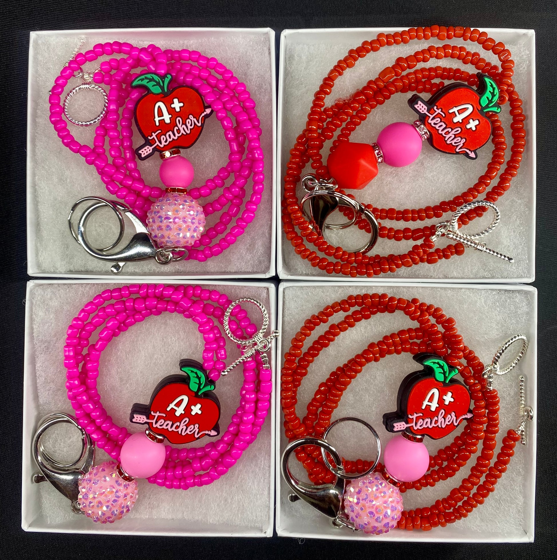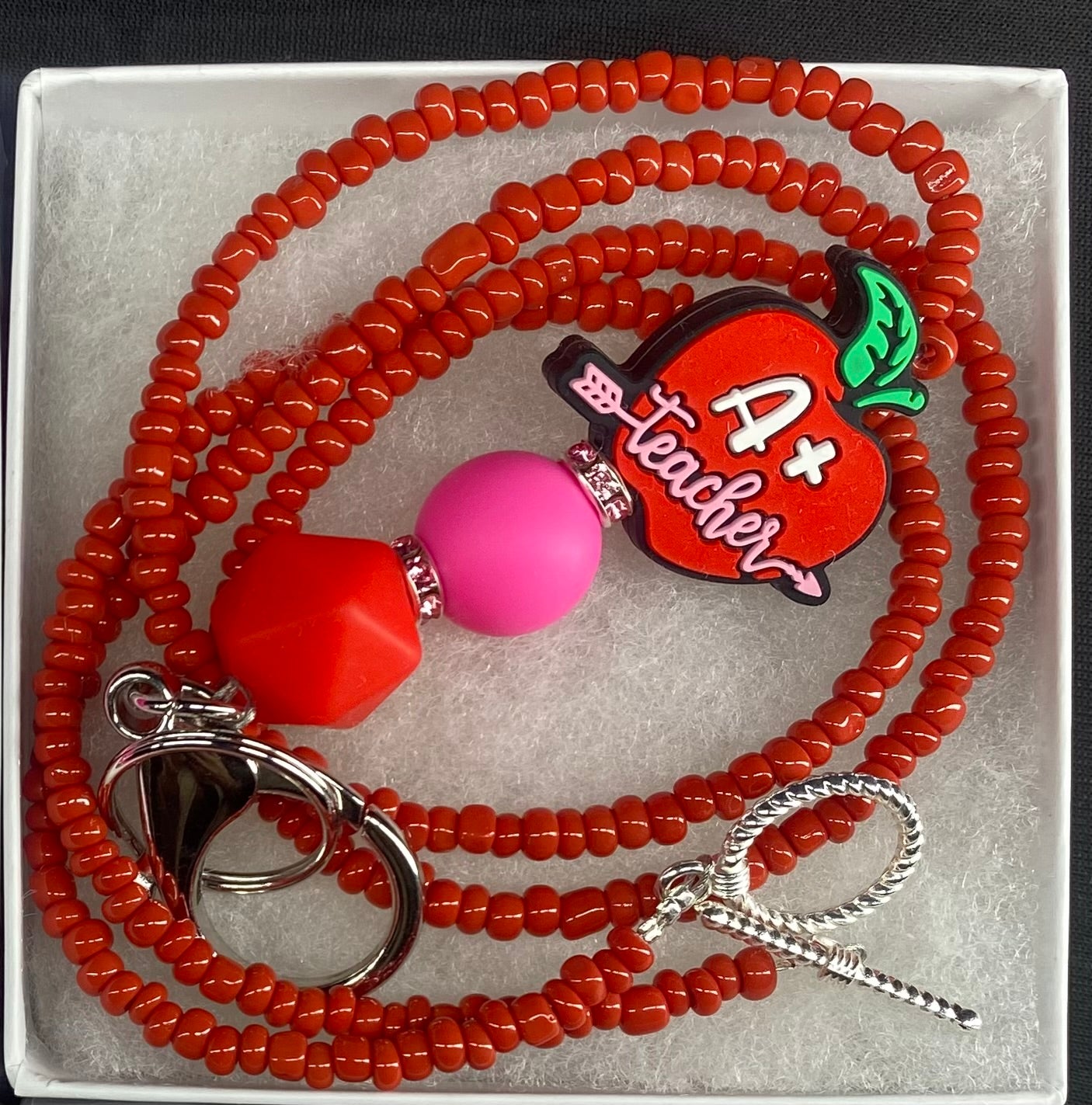 Elevate your professional aesthetic with our Teacher Lanyards, meticulously adorned with artisanal beads and finished with a nickel-free toggle clasp. These exquisite accessories not only ensure functionality but also serve as a statement of refined taste, seamlessly merging practicality with an air of cultured sophistication. Ideal for those who appreciate the elegance of artistry in even the simplest of items.